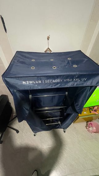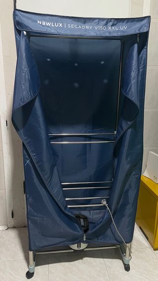 Secador de ropa eléctrico NewLux Poco uso Secadry V150 XXL UV. Ideal para secar la ropa de forma rápida y eficiente. -Luz uV para desinfectar - Estructura resistente y duradera. - Cubierta de tela para mantener el calor. - Ruedas para facilitar el transporte. Se vende por no usar