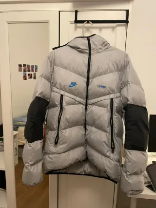 Plumífero original Nike con detalles en negro y gris. - Diseño acolchado. - Cremalleras frontales. - Logo de Nike y Air Max. - Tejido Storm-FIT.