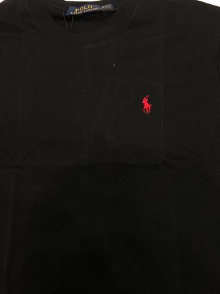 Camiseta clásica de Polo Ralph Lauren en color negro. Presenta el icónico logo del jinete bordado en el pecho. - Logo del jinete bordado en rojo. - Cuello redondo. - Manga corta. -Precio negociable
