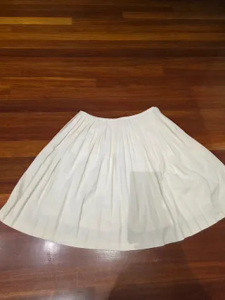 Conjunto de prendas de ropa para mujer. - Falda color blanco de Massimo Dutti talla 40. - Traje negro de Zara talla S. - Camisa azul marino de La Redoute talla 38. - Camisa de flores de Marieth talla 38.