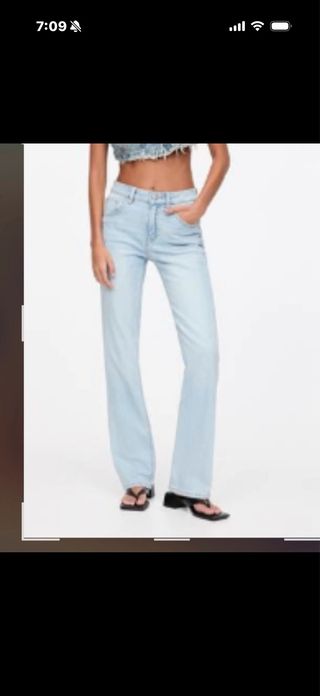Jeans de tiro medio y corte recto. - Diseño moderno y versátil. - Confeccionados en denim de alta calidad. - Lavado claro.