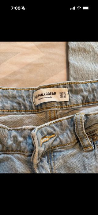 1 vestido con estampado de huellas 1 pantalón vaquero azul talla m 1 pantalón negro fino talla s 1 pantalón vaquero corto talla m De regalo 2 pantalones negros tipo vaquero talla m con 2 pequeños rotos.