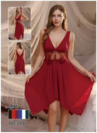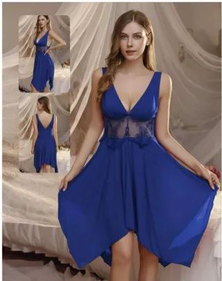 Vestido lencero de tirantes finos, ideal para estar cómoda en casa o como prenda interior. - Diseño con escote drapeado. - Espalda con detalle de mariposa. - Tirantes ajustables.