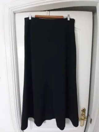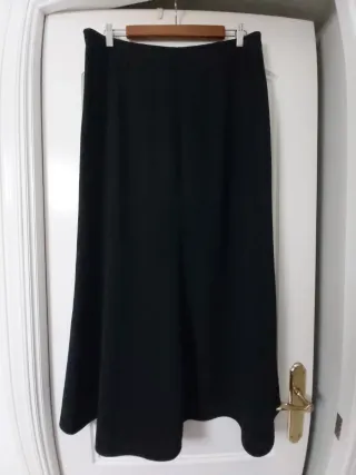 Falda larga de color negro. Su diseño es elegante y versátil. - Cremallera lateral. - Ajustada a cadera y a continuación corte amplio. - Tejido suave al tacto.