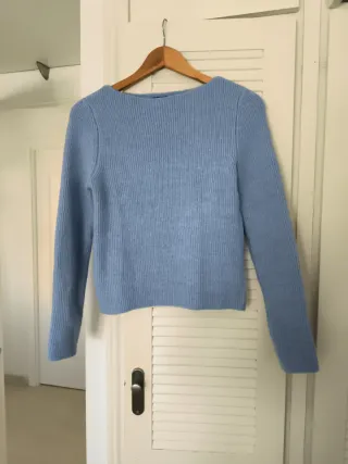 Jersey de lana de Mango en color azul. - Manga larga. - Cuello redondo. - Tejido de canalé.