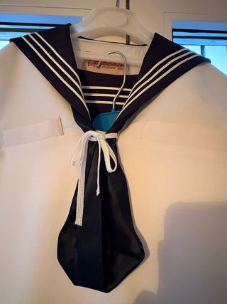 Conjunto de traje marinero para comunión, ideal para ceremonias especiales. Incluye chaqueta y pantalón. - Chaqueta con cuello marinero y detalles de rayas. - Pantalón blanco de corte clásico. - 7 años