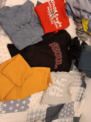 Lote de ropa de hombre. 8 kg aproximadamente. Incluye una variedad de prendas y marcas. Vaqueros, Pantalones, Camisetas, Camisas, Sudadera, Jersey, Chaqueta, 2 Bañadores Sin Estrenar, Pijama, Bufanda, Calcetines. - 2 Bóxers Calvin Klein - Sin Estrenar talla L. Marcas variadas: Zara, Sfera, Hugo Boss, Calvin Klein, Spagnolo, Philip Plein, Levis, Pull and Bear. TALLAS: XS, S, M Ver fotos. Ideal para reventa, tienda ropa segunda mano o similar. ¡ENVÍO INMEDIATO! 🚚📦🚀✅