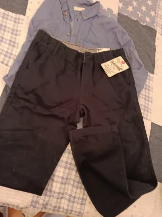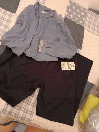 Conjunto de ropa para niño.Nueva - Camisa azul de manga larga de Zyppi, nunca usada sólo lavada - Pantalón azul marino chino nuevo tacto suave, conjunto ideal para otoño e invierno.