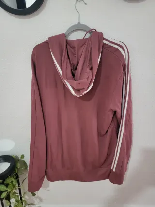 Sudadera con capucha de Adidas en color rosa. Presenta el diseño clásico de tres rayas en las mangas. - Cierre de cremallera. - Capucha ajustable con cordones. - Bolsillos frontales.