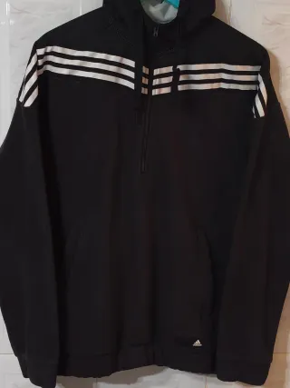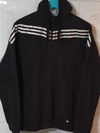 Forro polar de hombre con diseño deportivo. - Cierre de cremallera parcial. - Tres rayas distintivas en los hombros. - Bolsillo canguro frontal.