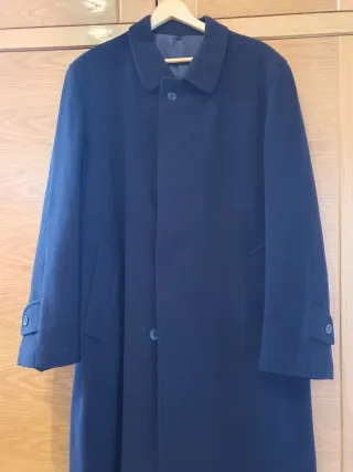 Elegante abrigo largo para hombre. La marca no es la seleccionada, ya que no aparece en la lista. - Diseño clásico y atemporal. - Cierre de botones. - Bolsillos laterales. - Puños ajustables con botón.