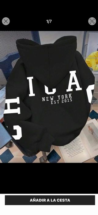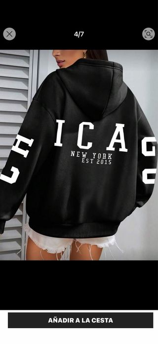 Sudadera con estampado de Chicago y New York Est 2015. - Diseño oversize. - Estampado frontal y en mangas.