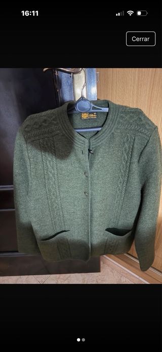 Prenda de punto de color verde con un diseño tejido. - Cuello redondo. - Cierre de botones. - Bolsillos delanteros.