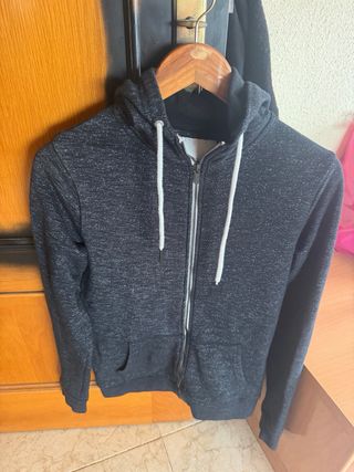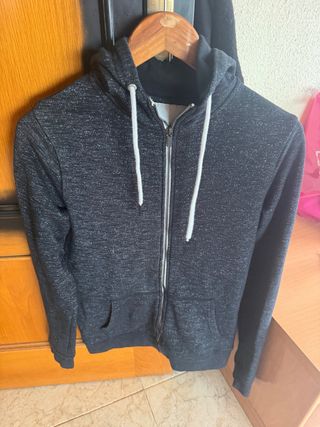 Chaqueta de chándal con un diseño jaspeado en tonos oscuros. talla M/L - Cierre completo con cremallera. - Capucha con cordones. - Bolsillos delanteros.
