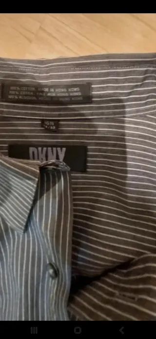 Camisa Dlny Hombre Talla 16.5 Gris Rayas