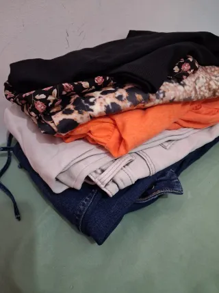 Lote de ropa variada con prendas de diferentes estilos. - Incluye prendas superiores e inferiores. - Prendas de verano e invierno. - Hay artículos con etiqueta. - prendas de varias marcas