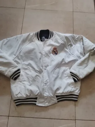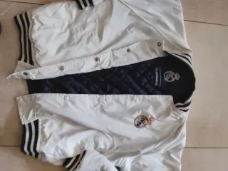 Chaqueta deportiva del Real Madrid para niño. - Diseño clásico. - Escudo del equipo bordado en el pecho. - Puños y cuello con detalles a rayas.