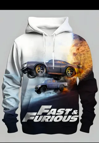 Sudadera con un diseño dinámico inspirado en la saga Fast & Furious. - Estampado Action Edition con coches y explosiones. - Mangas con degradado de color.