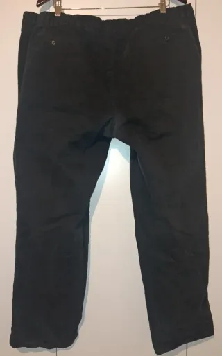 Pantalón de vestir en color negro de C.A.N.D.A. Corte recto. Cierre de botón y cremallera. Cuenta con dos bolsillos delanteros y dos traseros dobles. Talla 62 (4XL/5XL). Medidas: 118 cms largo x 84 cms largo pierna x 60 cms ancho cintura. Algodón. Muy ligero. En muy buen estado.