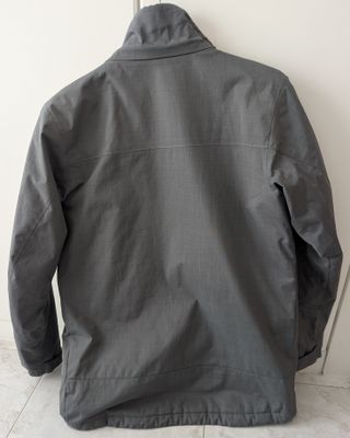 Chaqueta color gris con acolchado interior, muy cálida. Cuello alto. 4 bolsillos exteriores, 2 con cremallera y 2 con botones tipo clip Puños ajustables con velcro Medida 52 cm de ancho x 79 cm de largo