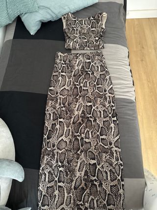 Conjunto de dos piezas con estampado de serpiente. - Top corto. - Falda larga.