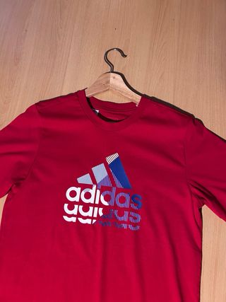 Camiseta de manga corta con un llamativo diseño de logo. - Logo Adidas con detalles en blanco, azul claro y azul oscuro. - Tejido suave y transpirable.