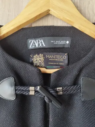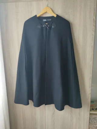 Elegante capa de invierno de Zara. - Diseño clásico y versátil. - Cierre frontal con detalle de cordón y cuero. - Tejido suave y cálido.