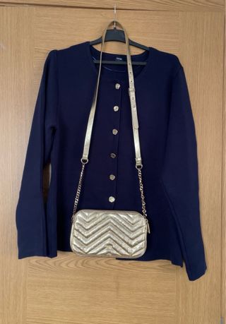 Rebeca/cardiganscon botones dorados+ bolso dorado