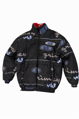 Chaqueta Grimey reversible con un diseño llamativo. - Color principal rojo con detalles multicolor. - Estilo acolchado.