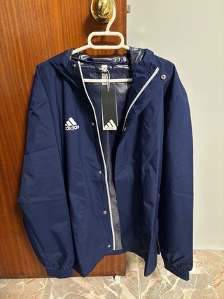 Chaqueta cortavientos de la marca Adidas. - Diseño ligero y transpirable. - Capucha integrada. - Cierre de cremallera frontal. - Logo reflectante de Adidas.