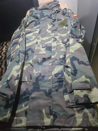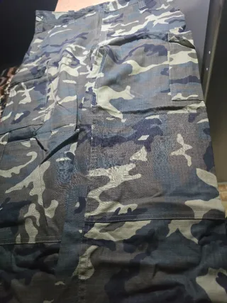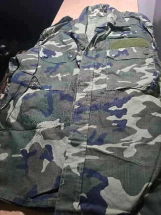 Traje militar con estampado de camuflaje, ideal para actividades al aire libre. - Diseño de camuflaje. - Cierre de botones. - Bolsillos frontales con solapa.