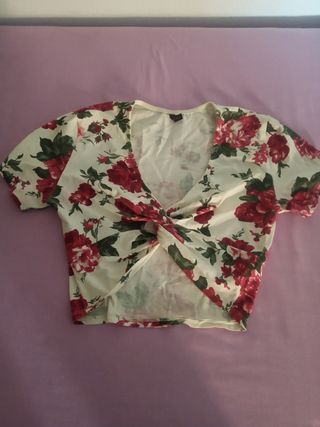 Lote de varias camisetas de chica talla S - Camiseta rosa con diseño de bloques. - Top azul con escote halter. - Blusa verde de manga corta. - top rojo - Top blanco - Camiseta estampada floral.
