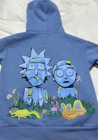 Sudadera con estampado de Rick y Morty. - Diseño frontal con personajes y criaturas. - Capucha. - Manga larga.