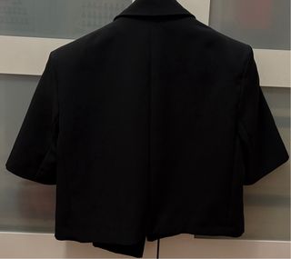 Elegante blazer corto de la marca CLP, con un diseño minimalista y moderno. - Corte cropped. - Manga corta. - Cierre de un botón. - Solapas clásicas.