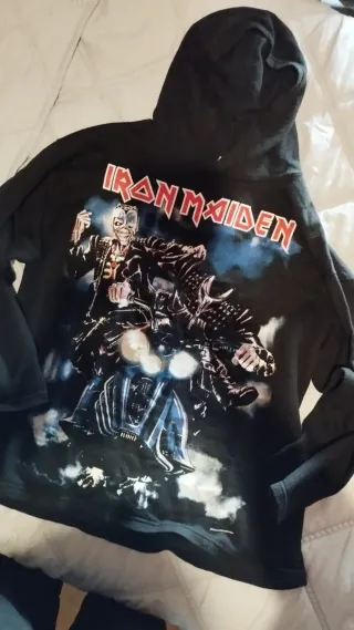 Sudadera con capucha y estampado de Iron Maiden. - Diseño frontal con Eddie. - Manga larga.