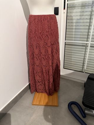Elegante falda larga con un bonito diseño de encaje. - Tejido de encaje con estampado floral. - Cintura elástica para mayor comodidad.