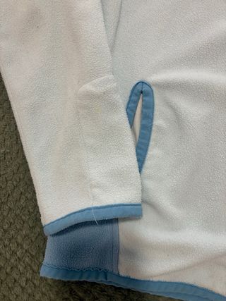 Forro polar Nike con capucha, perfecto para mantenerte abrigado. - Material de forro polar suave. - Diseño con cremallera completa. - Bolsillos laterales. - Logo de Nike en el pecho. talla XL pero no da mucha talla . Es como una M/L. Punta de cremallera rota pero sube perfectamente