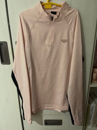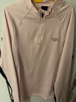 Sudadera deportiva de manga larga con media cremallera. - Diseño en color rosa con detalles en negro en los laterales. - Logo de la marca HI-TEC en el pecho. -SIN ESTRENAR, en perfecto estado