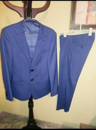Traje de dos piezas de la marca PURO EGO, talla 44/37. Solo una puesta, está COMO NUEVO. Precio original 122€. - Chaqueta con solapa de muesca. - Cierre de dos botones en la chaqueta. - Pantalón con trabillas para cinturón.