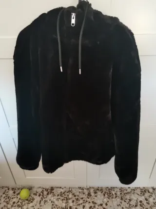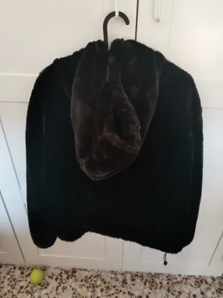 Chaqueta de pelo suave, muy cómoda y agradable al tacto. Se encuentra en perfecto estado. - Diseño con capucha. - Cierre de cremallera frontal. - Cordones ajustables en la capucha.