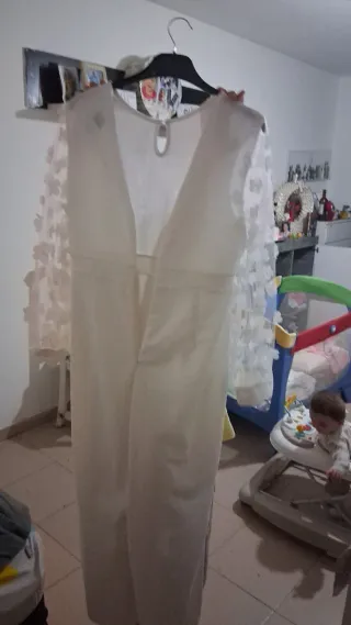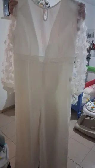 Mono largo de color blanco, ideal para cualquier ocasión. - Diseño con mangas de encaje. - Cierre de cremallera. - Corte favorecedor.