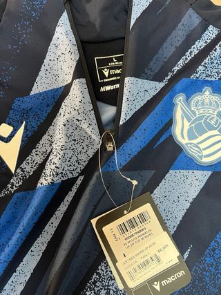 Camiseta de la Real Sociedad de la temporada 25/26. - Diseño con detalles geométricos en tonos azules. - Escudo del club en el pecho. - Logo de Macron en la manga.