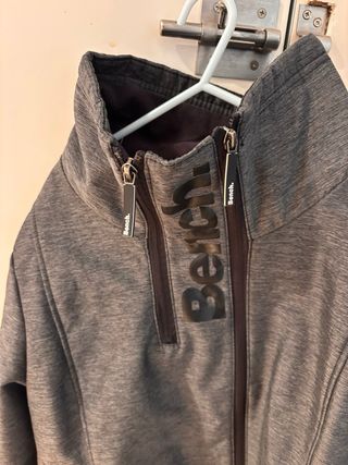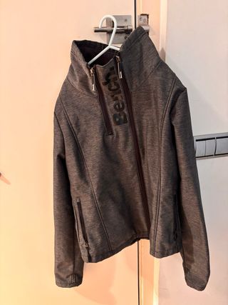 Chaqueta de la marca Bench en color gris. - Diseño moderno con cremalleras. - Cuello alto. - Bolsillos laterales con cremallera. usado muy poco.