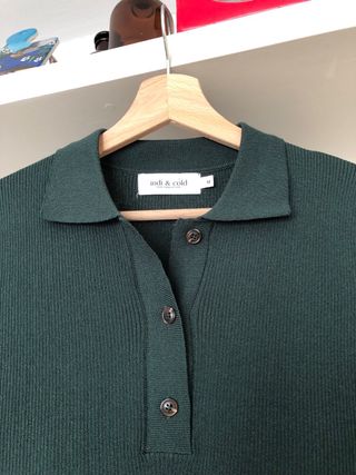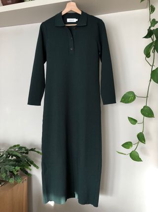 Vestido largo de manga larga con cuello tipo polo. - Tejido texturizado. - Cierre de botones en la parte superior. - Largo midi.