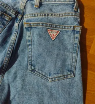 Vaqueros de la marca Guess en talla 32-34. - Color azul clásico. - Diseño de cinco bolsillos. - Cierre de cremallera y botón.