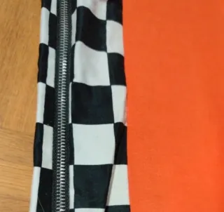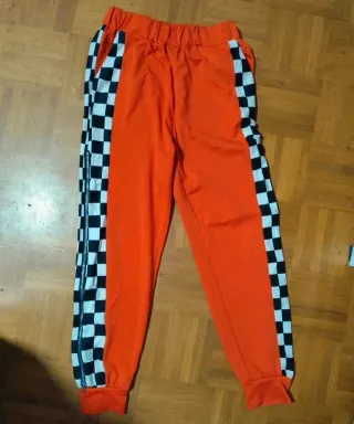 Pantalón deportivo de color naranja con detalles de cuadros en los laterales. Cuenta con cremalleras en los tobillos. - Diseño moderno y llamativo. - Cintura elástica para mayor comodidad.