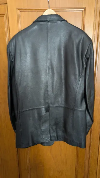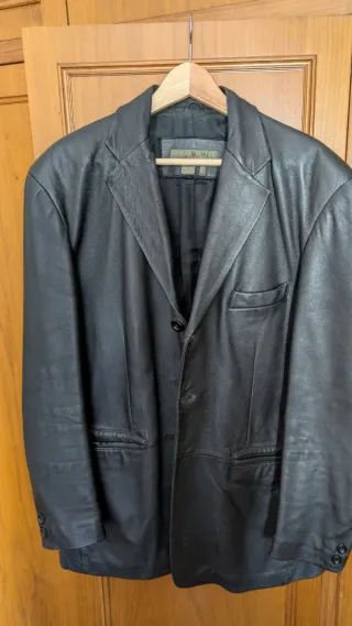 Elegante chaqueta de piel para hombre. - Material: Piel auténtica. - Cierre de botones. - Bolsillos frontales.