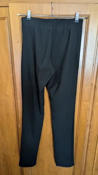 Pantalón elegante de color negro con una raya central. - Diseño con raya. - Corte recto. - Abertura en lateral interno para llevar con calzado ancho, botas...