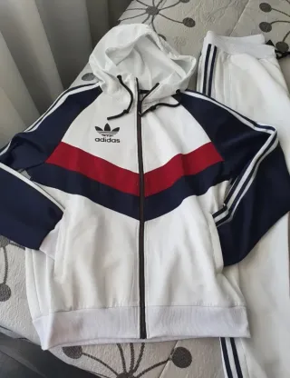 Conjunto de chándal ideal para un look deportivo. - Chaqueta con capucha y cremallera. - Pantalón a juego. - Diseño con bloques de color.