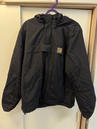 Chaqueta Carhartt de color negro con capucha. - Diseño tipo anorak. - Bolsillo frontal. - Cierre de cremallera parcial. - Puños ajustables.